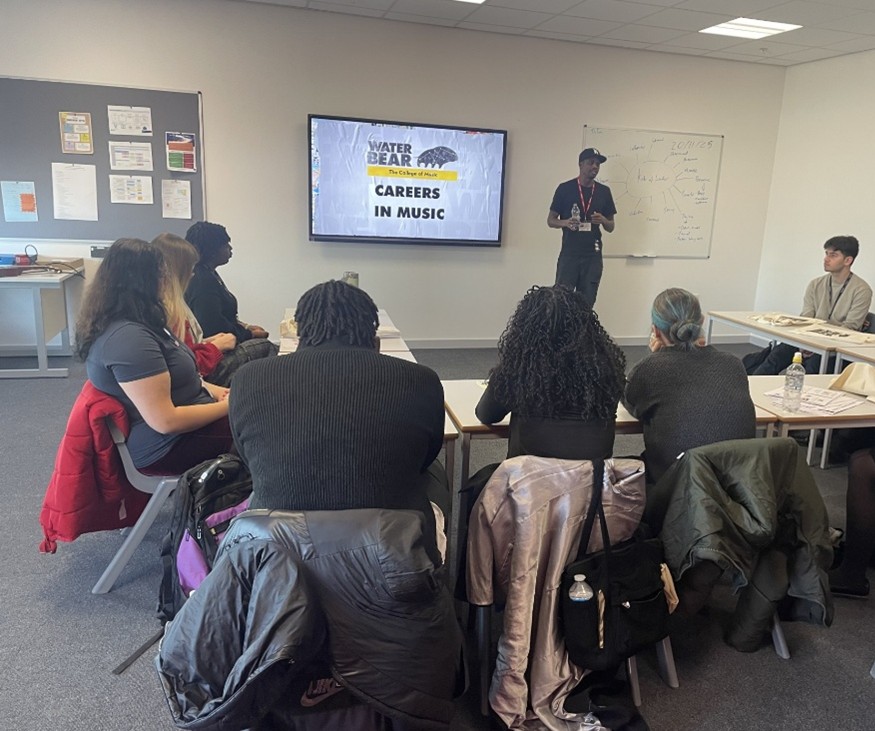 Year 12 students at Shireland CBSO Academy were given an insider’s view of the music industry when Jamie Mace from WaterBear College of Music visited the school to deliver an engaging session on degree courses and career opportunities. The visit formed part of the Academy’s post-16 programme to help students make informed choices about life after Sixth Form. WaterBear College of Music, based in Sheffield, was founded by music educators Adam Bushell and Bruce John Dickinson and brings together more than 30 years of professional music experience with the highest levels of music education. The college is also dedicated to supporting musicians and artists who are focused on building sustainable, long-term careers. During the session, Mace highlighted the variety of pathways available within the music industry, including performance, production, live events and digital media. Students were encouraged to reflect