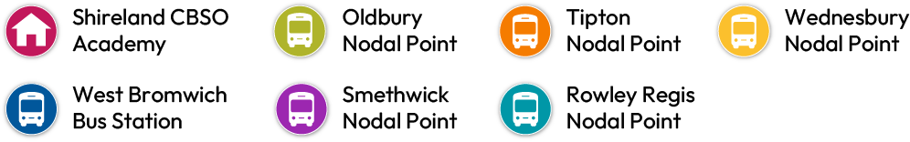 A nodal point is a key location within each of Sandwell’s six towns. These points represent a central reference location we use when assessing applications and planning accessible transport routes. Rather than focusing on how close a student lives to the Academy itself, we look at how close they are to their nearest nodal point.